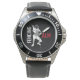 Herrenuhr aus Edelstahl mit schwarzem Lederarmband