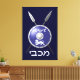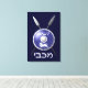 Eine Darstellung eines Maccabee's Schildes und zwei Speere. Der Schild wird von einem Löwen und Text mit dem Text "Israel" (Israel) im Paleo-Hebräischen Alphabet geschmückt. "Maccabee" erscheint auch im modernen Hebräisch. Die Maccabees waren jüdische Rebellen, die Juden aus dem Joch des Seleukiden Reiches befreiten. Chanukkah ist nicht nur ein Mittelwinterfest mit Kerzen und frittierten Köstlichkeiten, es feiert einen militärischen Sieg und sichert die Religionsfreiheit über das Seleukiden Reich. Außerdem war der Aufstand ein ziviler Krieg gegen die Juden, die G-d treu waren, und gegen diejenigen, die den Hellenismus der Seleukiden adoptiert hatten.