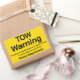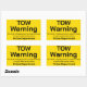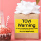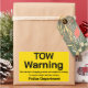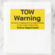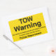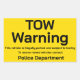 Eine helle gelbe Tafel warnt davor, dass ein Auto, Lastwagen oder ein anderes Fahrzeug illegal geparkt ist und abgeschleppt wird. Dies ist so eingerichtet, dass man die Nummer der Polizeidienststelle eingeben kann.