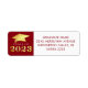 Eleganter, moderner personalisierter CLASS OF 2023 Absolventen-Rücksendeadressen-Aufkleber mit einer stilvollen Imitat Metallic Gold Folie 2023 und Graduierungspapier oder Mörtel auf einem bearbeitbaren roten Hintergrund können Sie zu einer Schulfarbe wechseln. HILFE: Für Hilfe bei der Modifikation/Personalisierung des Designs, der Farbänderung oder der Koordination von Elementen, wenden Sie sich bitte an den Designer, BEVOR er Bestellung über Zazzle Chat oder makeitaboutyoustore@gmail.com.