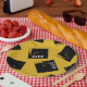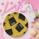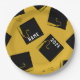 Teller der Creative Gold Graduation Party mit schwarzen und goldenen Graduierungskappen. So personalisieren Sie Text bearbeiten, um den Namen des Abschlusses und des Senior-Klasse Jahr hinzuzufügen.