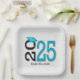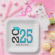 Abschluss 2025 Aquamarin und schwarz auf Holz Pappteller
