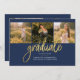 Abschluss 4 Foto Collage Script Navy Blue Gold Ankündigung für die Klasse von 2025. Passen Sie diese einfach an, indem Sie den Text ändern und die Fotos durch Ihren ersetzen. Eine moderne und trendiere Art, Ihren Abschluss in diesem Jahr bekannt zu geben!