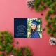 Abschluss 2025 Foto Navy Blue Script Party Gold Folieneinladung