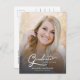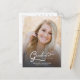 Elegante moderne Drehbuch grad Foto Abschluss Ankündigung. Mit einem Foto in voller Größe auf der Vorderseite mit weißem Texteüberlagerungen und einem Foto auf der Rückseite mit optionalen Details.