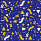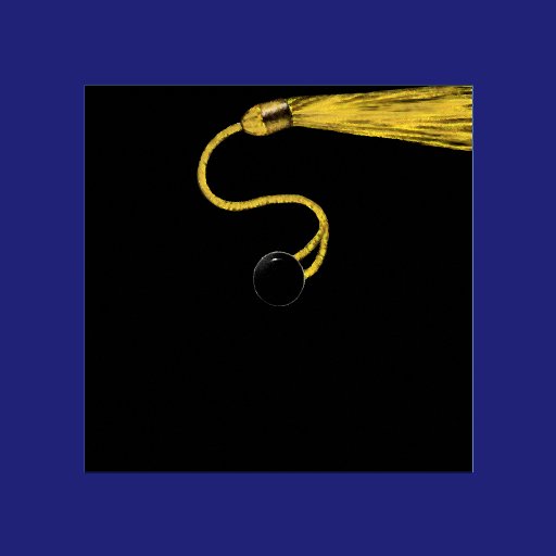 Creative Abschluss Geschenkpackung oder Party Dekoration mit schwarz und goldfarbenen Graduierdeckel auf blauem Hintergrund. So personalisieren Sie Text bearbeiten, um seinen Namen und das Senior-Klasse Jahr hinzuzufügen.