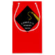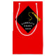 Abschluss Geschenktasche mit kreativem Schwarz-Gold-Cap-Design und Gratulationen auf rotem Hintergrund. Zum Anpassen editieren Sie Text, um den Namen Ihres bevorzugten Senior Class Grades hinzuzufügen.