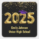 Abschluss 2025 Goldballons und Lila Obergrenze Quadratischer Aufkleber