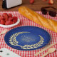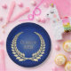 Abschluss 2025 Goldener Laurel auf blau Pappteller