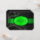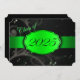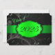 Grün und Schwarz Abschluss mit hellgrüner Blüte und einem grünen Band, das das Jahr des Abschlusses zeigt. Die Kartenrückseite ist schwarz mit hellgrünem Schriftart, damit die Abschlussankündigungen ausgefüllt werden können.