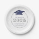 Eleganter personalisierter Abschluss CLASS OF 2025 Graduierungsparty Papier Teller mit Imitaten Metallic Marineblau und Silber Graduierung und Jahr mit Ihrem benutzerdefinierten Text (mit GRATULATIONS NAME gezeigt) in Marineblau. HILFE: Für Hilfe bei der Modifizierung oder Personalisierung des Designs, bei Farbänderungen, bei der Größenänderung, bei der Übertragung des Designs auf ein anderes Produkt oder wenn Sie die Dinge koordinieren möchten, wenden Sie sich bitte an den Designer, BEVOR er die Bestellung über die Registerkarte Zazzle Chat MESSAGE oder per E-Mail makeitaboutyoustore@gmail.com.