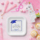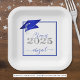 Moderne personalisierte KLASSE VON 2025 königsblauen, silbernen und weißen Graduiertenparty Teller mit dem Namen Ihres Absolventen in einem schicken handgeschriebenen Drehbuch mit Imitaten metallischen königsblauen Graduierungshülse und Imitaten metallisches Silber 2025. HILFE: Für Hilfe bei der Modifikation/Personalisierung des Designs, der Farbänderung, der Übertragung des Designs auf ein anderes Produkt oder der Koordination von Gegenständen, wenden Sie sich bitte an den Designer BEVOR Bestellung über Zazzle Chat oder makeitaboutyoustore@gmail.com.
