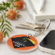 Creative Klasse von 25 memento Geschenk mit schwarzer Graduierenkappe und Goldtassel auf orangefarbenem Hintergrund und lustige Fave Drehung. Bearbeiten Sie Text, um das Senior Class Year zu ändern.