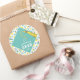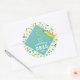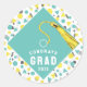 Abschluss-Geschenksticker, Gastgeschenk-Etiketten und Umschlag Aufkleber mit aquamarinem blauem Gradmütze mit einer Goldtassel auf Konfetti-Hintergrund. So personalisieren Sie Text bearbeiten, um Jahr hinzuzufügen und auf andere Weise anpassen.