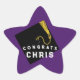 Einzigartige Graduiertensticker, Gastgeschenk-Labels und Umschlag Aufkleber mit klassischer Schwarz-Gold-Graduierung auf lila Hintergrund. Bearbeiten Sie Text, um den Namen des Absolventen hinzuzufügen oder anderweitig anzupassen.