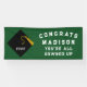 Personalisierter grüner Abschluss Glückwunsch Party-Banner für Senior-Klasse. Text bearbeiten, um Jahr und Namen des Abschlusses hinzuzufügen.