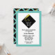 Creative Abschluss lädt mit klassischem Schwarz-Mütze- und Goldtassel-Design auf aquamarinem, blauen Hintergrund ein.