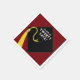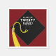 Creative Graduiertennapkins für 25-Grad-Klasse mit lustiger Linie und klassischer schwarzer Graduierenkappe mit goldener Tassel auf maronischem Hintergrund.