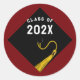 Klasse der '25 Abschluss Umschlag Aufkleber, Gastgeschenk-Etiketten und Gradgeschenksticker mit schwarzer Kappe mit Goldtassel auf Maronuntergrund. Text bearbeiten, um ihn zu personalisieren.