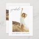 Budget Abschluss Grad Announcement Karten, die ein Foto (zwei Bilder) auf der Vorder- und Rückseite sowie den Namen der Schule, Abschluss Jahr, Ort, Zeit und Zukunft Pläne haben. Die Einladungen der High School oder Uni Class von 20XX Graduation beinhalten eine moderne, handgeschriebene Schriftzeichen-Typografie, die elegant, einfach und modern zu bedienen sind, nachdem Sie einen minimalistischen Studiengang absolviert haben.