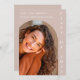 Mit dieser modernen Fotokarte kündigen Sie den Abschluss Ihres Kindes an. Die Karte ist in einem schönen, beige blütigen Stil gehalten und hat ein kuppelförmiges Bildloch. Personalisieren Sie diese Abschluss-Ankündigungskarte einfach mit dem Foto und den Details Ihres Abschlusses. Wenn Sie Änderungen am Design benötigen, wie z.B. Farbe, Text oder Schriftart, kontaktieren Sie uns bitte unter seamistmail@gmail.com. Wir Liebe sind Teil Ihrer glücklichen Erinnerungen.