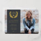 Eine formelle, aber moderne Abschluss Foto Ankündigung, um diejenigen zu feiern, die einen Juris Doktor Abschluss. Auf der Vorderseite der Ankündigung befindet sich ein vollblütiges Foto mit Farbüberlagerung. Das Jurastuhl (mit der Abkürzung 'JD'), der Lorbeerkranz und der Vorlagentext können in einer Folienfarbe Ihrer Wahl gedruckt werden. Die Rückseite bietet einen soliden Hintergrund und Vorlagentext für eine längere Meldung. Wenn Sie es vorziehen, keinen Text auf der Rückseite einzufügen, löschen Sie ihn einfach vor der Bestellung. Wenn Sie ein Foto auf der Kartenrückseite bevorzugen, löschen Sie sowohl den farbigen Hintergrund als auch den Vorlagentext und laden Sie Ihr eigenes Foto hoch. Das Design ist in verschiedenen Farben in meinem Geschäft, in Versionen ohne die Abkürzung "JD", sodass sie für jede rechtliche Qualifikation angepasst werden können, und auch in nicht-foliengepressten Versionen. Andere Designs ohne farbiges Overlay zwischen Foto und Text sind ebenfalls verfügbar (in Folie und nicht in Folie).