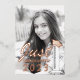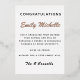 Fügen Sie in das Foto Ihres stolzen Absolventen und ihren Abschluss Jahr auf der Vorderseite und anpassen Sie den Text mit ihrem Namen, Leistungen und persönliche Nachricht auf der Rückseite. Der Text auf der Vorderseite lautet "Just Graduated 20XX" mit einer Illustration eines abgestuften Zylinders mit einem Abschluss-Massivhut. Ideal für Studierende, die sich in den Wissenschaftsbereich begeben.