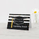 Wenn jemand seinen Associates Degree verdient hat, feiern Sie mit ihnen, wie Sie ihnen gratulieren. Diese atemberaubende Schwarz-Weiß-Karte ist sehr grafisch mit den Streifen hinter der Kappe. Ein Tassel auf der Graduationskappe hat einen goldenen Look, der digital erstellt wird.