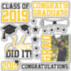 Erstellen Sie eine niedliche Scrapbook-Seite für Ihren Absolventen mit diesem Black and Gold Foto Abschluss Stickers. Sie können das mit dem Foto des Absolventen und dem Jahr der Klasse an zwei Stellen personalisieren. Phrasen wie "You done it", "Glückwunschs! Graduate", "Class of 2024", "Grad" und "Glückwunsch" sind in Gold oder Schwarz. Es verfügt auch über Diplom-Diplome und Sterne.