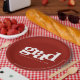 Abschluss Backstein rot fett moderne einfache Typo Pappteller