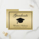 Senden Sie Ihrer Familie und Freunden diese elegante Abschlussfeier Einladung Postcard. Dieses Design verfügt über eine schwarze Graduationskappe, mit "Graduate" geschrieben in Skripttypografie oben und Ihren Namen, Schule und Jahr Details unten auf einem Imitat goldenen Hintergrund. Die Rückseite der Postkarte hat Ihre Einladungsdetails in Schwarz auf Imitat Silber. Speziell für Sie konzipiert durch die Künstlerin ©Susan Coffey.