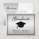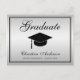 Senden Sie Ihrer Familie und Freunden diese elegante Abschlussfeier Einladung Postcard. Dieses Design verfügt über eine schwarze Graduationskappe, mit, "Graduate" geschrieben in Skripttypografie oben und Ihren Namen, Schule und Jahr Details unter allen auf einem Imitat silbernen Hintergrund. Die Rückseite der Postkarte hat Ihre Einladungsdetails in Schwarz auf Imitat Silber. Speziell für Sie konzipiert durch die Künstlerin ©Susan Coffey.