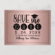 Melden Sie Ihren Abschluss mit dieser eleganten-Postkarte an. Dieses Design-Template verfügt über ein modernes typografisches Design in Schwarz auf Rose Gold durch ein Graduierungspapier. Die Vorderseite der Postkarte lautet "zum Abschluss der" mit dem Datum und dem Namen, mit dem Sie personalisieren können. Auf der Rückseite der Postkarte befinden sich weitere Details Ihres Abschlusses, einschließlich einer Party Einladung, die Sie anpassen können. Glückwunsch auf Ihrem Abschluss! Entworfen von Künstler ©Susan Coffey.