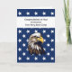 Abschluss-Karte herzlichen Glückwunsch für Navy Boot Camp. Das Design ist ein illustrierter Adler und Sterne von einer amerikanischen Flagge. Alle Wörter auf der Karte können geändert werden. Dank der KI-Technologie für den Adler.