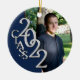 Fügen Sie diesem silberfarbenen und blauen "Class 2022" Foto Abschluss Keepake-Ornament ein Foto hinzu. Anpassen mit einem Namen und Text auf der Rückseite oder fügen Sie ein anderes Foto.