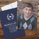 Dieses Design umfasst klassisches Foto mit Graduiertenklassiker, ein klassisches, modernes, minimalistisches, klassisches Abschluss, ein Mörtel-Lorbeerkopfkarton, Blätter für einen High-School- oder Uni-Senior, eine marineblau-blaue moderne Klasse, eine traditionelle Mörserpappe, klassische Abschluss-Abitur-Party Einladungen, einfache Abschluss-Foto-Ankündigungen mit Schulfarben mit Weißtext-Typografie, eine Abschluss-------Ankündigung