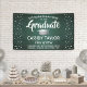 Fügen Sie eine personalisierte Touch zu Uni oder High School Abschluss Party Dekorationen mit diesem benutzerdefinierten dunkelgrünen, weißen und silbernen Banner. Der gesamte Text ist einfach anzupassen, um Namen, Klassenjahr, Schule, Abschluss, Auszeichnungen, inspirierende Zitate oder anderen Text Ihrer Wahl. Das Design besticht durch einen grün gebürsteten Hintergrund, Imitate aus rostfreiem Edelstahl-Mörtel, festlich graue und weiße Konfetti-Punkte, stilvolle moderne Typografie und handgeschriebene Schriftzeichen-Kalligraphie. Bitte beachten Sie, dass Silber gedruckt ist, nicht metallische Folie. Dieses Party-Schild ist eine elegante Art, den besonderen Tag zu feiern. Herzlichen Glückwunsch an den Absolventen!