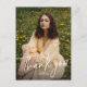 Diese stilvolle und moderne Dankeskarte zur Graduierung enthält vorne ein großes Foto mit den Worten Danke und individuellem Text. Die Rückseite dieser Dankeskarte für Absolventen bietet Platz für ein zweites Foto und eine individuelle Dankesnachricht. Die Rückseite kann auch leer gelassen werden, um eine handgeschriebene persönliche Dankesnotiz zu ermöglichen. Diese einfache Postkarte zur Graduierung eignet sich hervorragend für Abiturienten oder Hochschulabsolventen. Passende Graduierungsankündigungen und Einladungen zur Graduierungsfeier sind in der Kollektion von Lea Delaveris Design erhältlich.