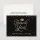 Diese elegante und festliche Dankeschön-Karte enthält Gold (simulierte Folie) Konfetti mit den Worten "Danke", die in einem goldenen Skript-Schriftart gezeigt werden. Der Hintergrund ist schwarz, kann aber in eine beliebige Farbe geändert werden. Auf der Rückseite der Karte befindet sich ein Nachrichtenbereich sowie ein Leerraum, in dem der Absolvent seinen Namen unterschreiben kann, sowie eine zusätzliche handgeschriebene Notiz. Eine schöne und einfache Art, den Gästen zu danken.