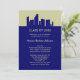 Moderne Einladung ideal für einen Absolventen der Architektur, Bau oder ähnliches Feld. Eine Skyline-Silhouette in solider Farbe. Ideal für einen männlichen oder weiblichen Abschluss. Das Jahr des Abschlusses macht es zu einem Sake. Fügen Sie Ihre eigene Formulierung hinzu.