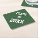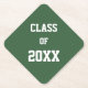 Set von 6 runden, absorbierenden, Pulp-Board Drink-Cochers für eine Graduierungsparty oder Klasse Wiedersehen, die Schulfarben von Jägern grün und weiß, zusammen mit dem Klassenjahr in fett, weiß gedruckt. Unterrichtsjahr nach Bedarf bearbeiten und ersetzen. Sie können auch einen anderen Untersetzer-Stil wählen.