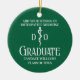 Dieses personalisierte grüne Osteopathische Medizinstudium Abschluss Weihnachtsschmuck für einen DO oder einen Osteopath Arzt mit einem Osteopathikikikadukus Symbol und Ihrem Uni-Namen für die Klasse von 2025. Passen Sie in weißer Typografie mit Ihrem geschlossen Jahr für eine große personalisierte Hochschulabsolventenpräsenz.