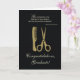 Feiern Sie die Kreativität und Hingabe eines Absolventen einer Kosmetologie-Schule mit dieser stilvollen Schwarz-Gold-Abschluss-Karte. Mit einem goldenen Aussehen der Schere und einem Kamm hebt diese Karte die für die Schönheitsindustrie unverzichtbare Handwerkskunst hervor. Die Insider-Botschaft bietet herzliche Wünsche für das Glück und den Erfolg ihrer zukünftigen Bemühungen. Diese Karte ist perfekt, um die harte Arbeit hinter einem Kosmetologieabschluss zu ehren und ist ein durchdachter Weg, ihre Errungenschaften und ihre spannende Reise zu erkennen. (Der Glitzer ist nur ein digitaler Effekt.)