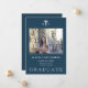 Moderne, elegante, dunkelmarineblau-weiße Ankündigungskartentafel für den Abschluss der Krankenschwester mit Ihrem individuellen Foto und Text.