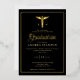 Eine goldene Illustration des Caduceum-Symbols für den Pflegeberuf schmückt diese elegante, klassische Abiturfeier, die einfach, aber raffiniert, zeitlos und elegant ist. Es enthielt auch einen handgezeichnet, gebürsteten Goldrahmen (reale Folie!). Das zeitgenössische Typografie-Design wird durch die goldenen Farbtöne und die minimalistische Gestaltung hervorgehoben. Passen Sie jede Textzeile an. Schwarz und Gold.