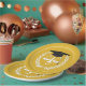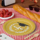 Einzigartiges Party-Teller-Design mit kreativen Maßstäben für die Gerechtigkeit, personifiziert mit schwarz und goldfarbener Graduierung.