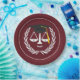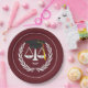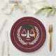 Teller der Jurastudien mit einzigartigen Maßstäben für die Gerechtigkeit, die mit einer schwarzen und goldenen Graduierungshülse versehen sind.