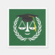 Einzigartige Jurastudien-Party-Servietten für Juristen und Gäste mit lustigen Maßstäben für Gerechtigkeit in schwarz und goldfarben auf grünem Hintergrund.