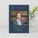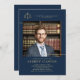 Feiern Sie Ihren Jurastudium - oder Sie selbst - mit diesem eleganten, klassischen Jurastudio-Foto zum Thema Marine und Gold. Ersetzen Sie die Waage der Gerechtigkeit durch das Logo Ihrer Schule oder verlass es, wie es ist. Das zeitgenössische Typografie-Design wird durch die goldenen Farbtöne und die minimalistische Gestaltung hervorgehoben. Zwei Goldlinien (digitaler Effekt!) deuten auf einen modernen, minimalistischen Rahmen für das Foto hin. Passen Sie jede Textzeile an. Marine und Imitate Gold.