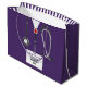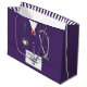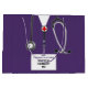 Kreative Geschenktasche zum Abschluss der Medizinischen Fakultät für Doktoranden mit violetten Krankenhauskitteln und Stethoskop. Text bearbeiten, um den Namen des Arztes, des Arzthelfer oder der Krankenschwester und die medizinischen Qualifikationen hinzuzufügen.
